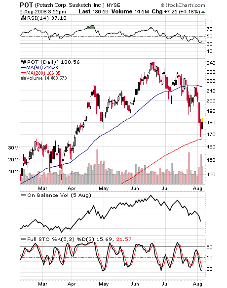 In last night’s Trade Report, I highlighted commodities as an oversold bounce setup. I used POT as my primary example and entered today based on last night’s analysis.