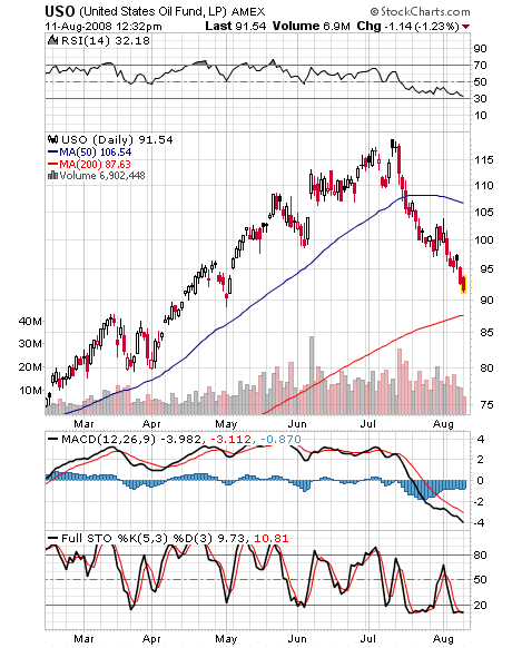 As planned in last night’s post, I took a small position in USO once we got some weakness. I entered long 100 shares at $91.47. My stop is placed under the 200 day MA.