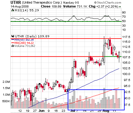 Entered long 100 shares of UTHR at $108.29.