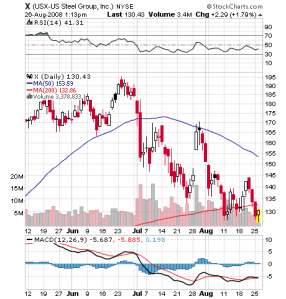 I am currently stalking X (US Steel), waiting for some low volume strength to get short. I’d like to enter as close to the 200 day MA as possible.