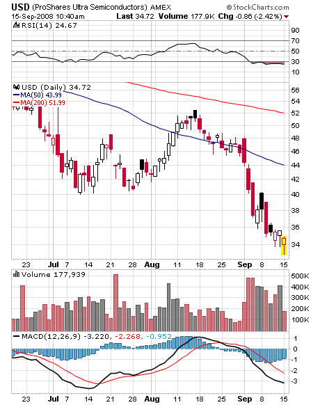I came into today with very few setups. One was to buy USD on weakness based on the oversold bounce idea (though it is a short setup once it hits the 50 day MA). As planned, I bought this morning’s weakness, 250 shares at an average price of $33.86.