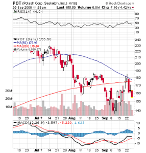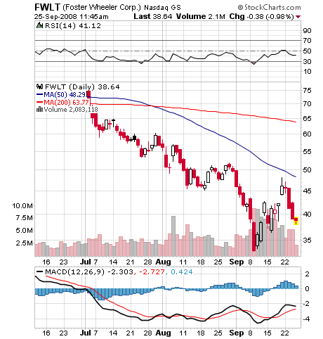 I could not have asked for more from the PCX, FWLT and POT trades. I covered my entire positions and may short again on strength. Note on the charts below that there is still room to fall. Those of you who have been with me for a while know I would usually leave some of my positions open for more profits. However, this market is very volatile, so I am taking profits earlier than normal–especially when I already have solid gains.