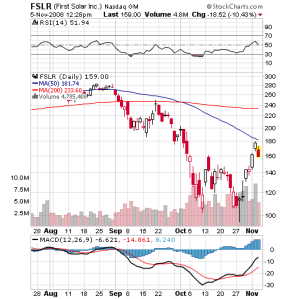 I just took partial profits in FSLR at $159.66 (entry at $176.18) for a one day $1652 gain. I am still short 100 shares and have moved my stop to entry level.