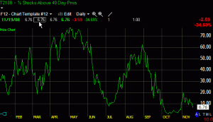 It’s interesting that the T2108 is not at new lows while SSO and QLD have hit new lows. This tells us that there are more stocks above their 40 day moving averaged now, at new lows, than there were at the last higher low. This positive divergence leads me to believe we could get a good bounce off a big down day.