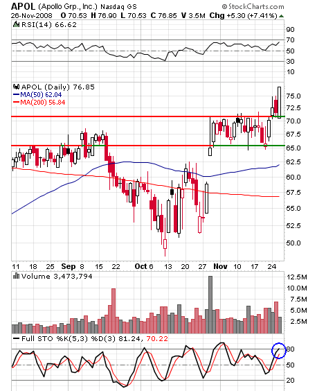 I exited the second half of my position in APOL today at the close. I still like the stock, but it is very overbought at the moment. I’ll look to re-enter on a pullback.
