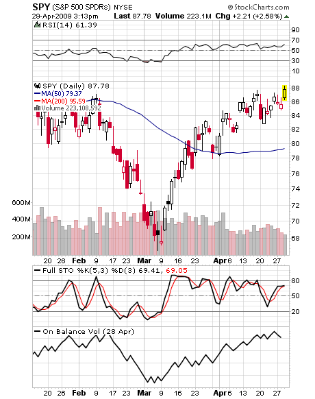 I exited half my SPY postion at $88.05 (entry at $84.03). I am still holding 200 shares.