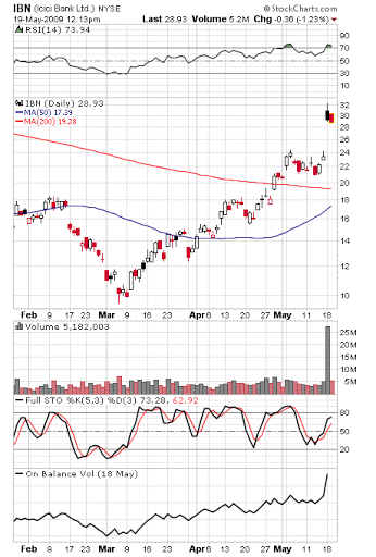 A useful tool for improving trading is to analyze trades that you did not take. IBN has been on my radar for since the April breakout. I did not trade it because the volume pattern was not to my liking.
