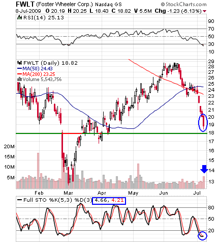 As noted in the alert to subscribers yesterday, I entered FWLT at $19.03. The stock is extremely oversold and due for a snapback.