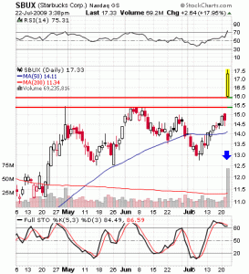 Starbucks had a great earnings reaction today and broke out over resistance. While the stock is too overextended to enter now, I will stalk this chart and likely enter on a pullback to the bottom of the breakout bar.
