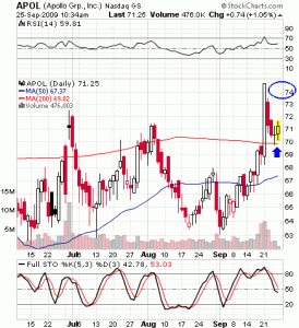 APOL has a weird, volatile pattern, but still offers a low risk setup off a breakout-pullback.