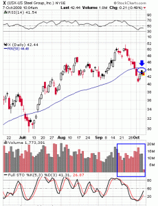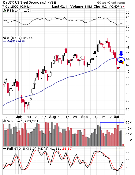 On Friday I pointed to the X short setup, if X was to pullback to the 50 day moving average. We got that yesterday. As noted to Trade Report members yesterday, I took the short entry, with a stop just above the moving average.