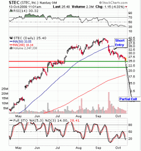 Is it time to take profits in the STEC short? Entry was made back on September 24th at $30.75., so we are looking at a 15-20 percent gain.