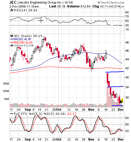 I went long JEC today as an oversold bounce setup. Stop is fairly tight.