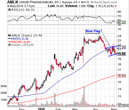 AMLN: Bear flag under the 50 day moving average.