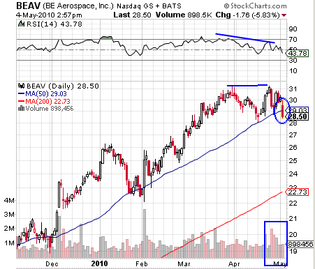 BEAV: Break of 50 day moving average, which acts as uptrend line.