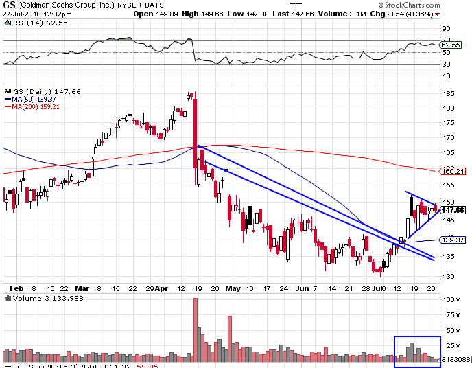 I entered GS today. Nice triangle pattern formed post trend breakout. Nice volume within triangle as well.