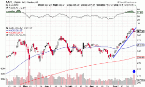 I went short AAPL prior to the trendline break at $292 (see Trade Report). Looking to take profits in the $180-185 range: