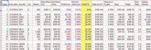 My trade results back the benefit of smart risk management. Members of my nightly Trade Report receive an alert every time I enter or exit a trade. Since the Report started on May 13, I have made 14 trades. My win rate is exactly 50 percent. You would expect that I am breaking even, right? Wrong. I am up $7,543 in just over a month (and that does not include the +$4000 YELP trade, which I am still holding). My average win is +$1628 while my average loss is only -550. I am getting 3:1 on my trades.