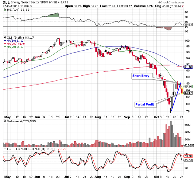 Swing traders must have a basket of setups in order to trade consistently and successfully. One of my favorite setups is the “rubber band” short setup. $XLE is a good example of this setup.