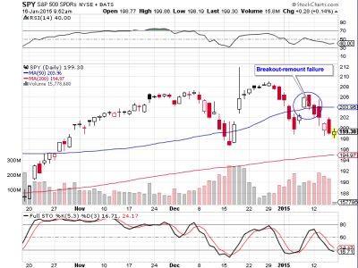 Swing traders need a basket of “goto” setups that can be applied to different markets. Two of my favorite are the breakout-remount and the breakout failure. Mr. Market, aka SPY, offered us a little of both a few days ago with a remount that failed.