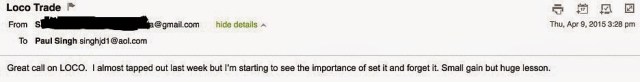 One of my mentorees just witnessed the power of set it and forget it first hand. I got this email from him today: