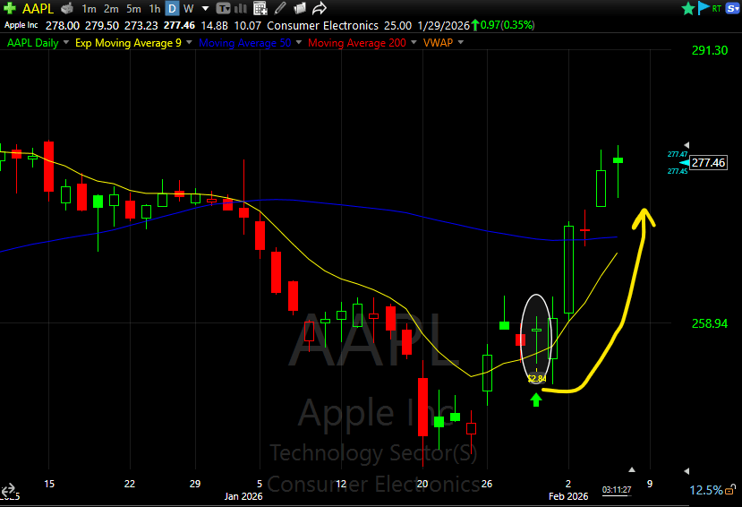 The recent move in Apple Inc. is a perfect example. Earnings were poorly received initially. The stock opened down, reversed by the close, and then followed with a strong multi-day run. That follow through was not luck. It was positioning resolving after failed downside.