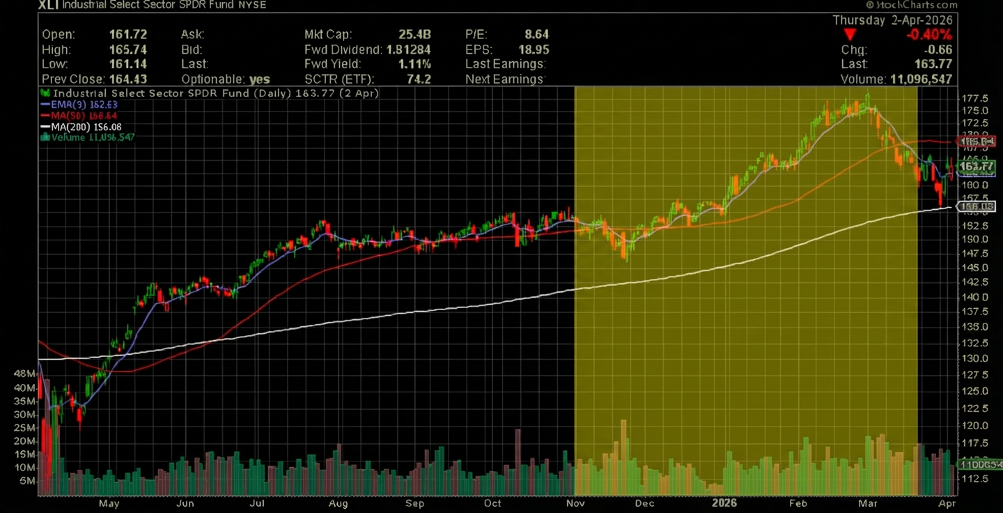 Another phase that caught many traders off guard was the move into industrials, which on the surface may not seem exciting compared to high growth tech, but when you have themes like infrastructure spending, reshoring, and defense, institutions begin allocating heavily into these areas and the price action reflects that.