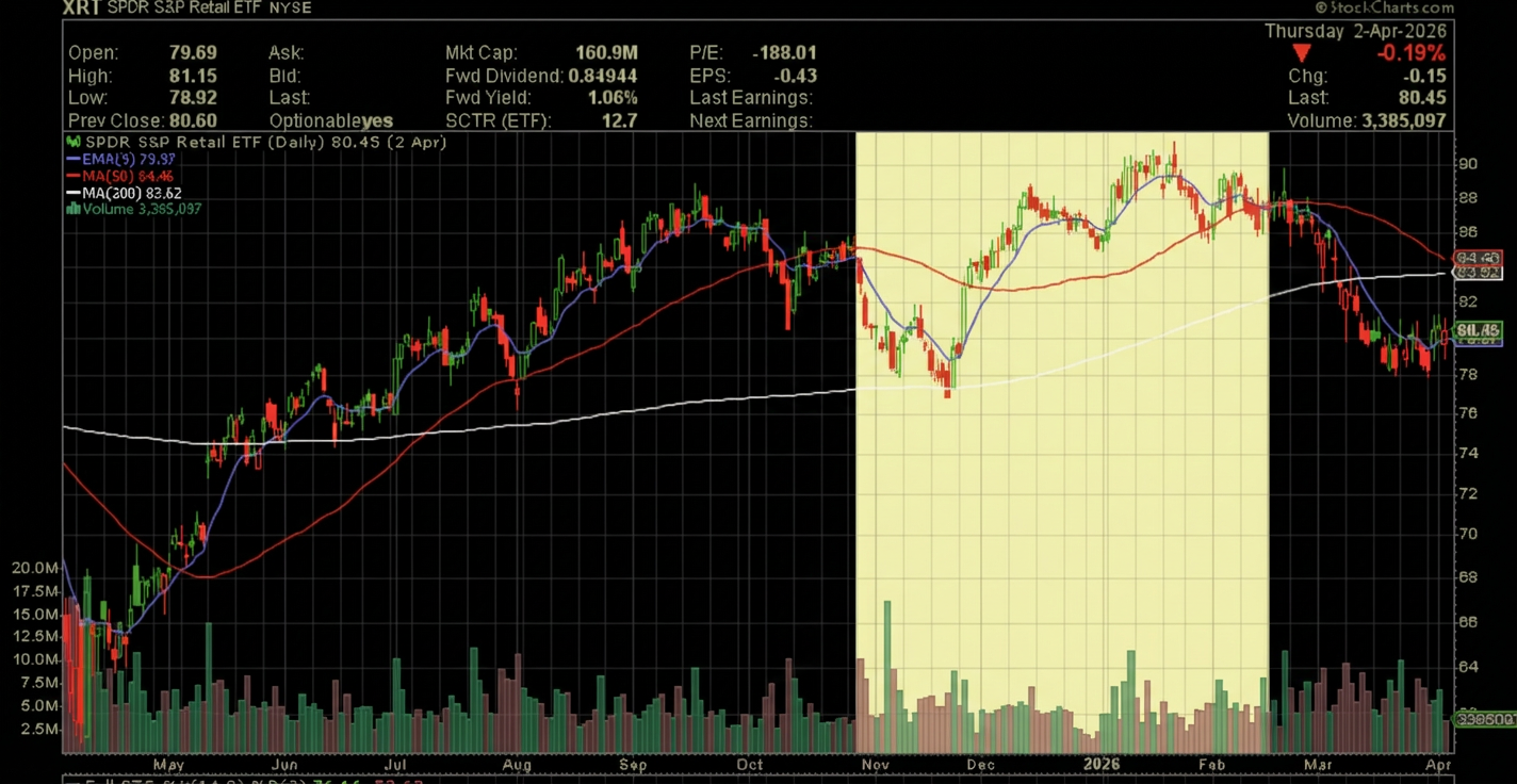 I talked about this a lot during recent market conditions where if we got any positive macro news or easing of fears, the biggest percentage gains would come from the most beaten down sectors, not the ones already extended, and we saw exactly that as retail names that had been crushed suddenly became leaders for short bursts.
